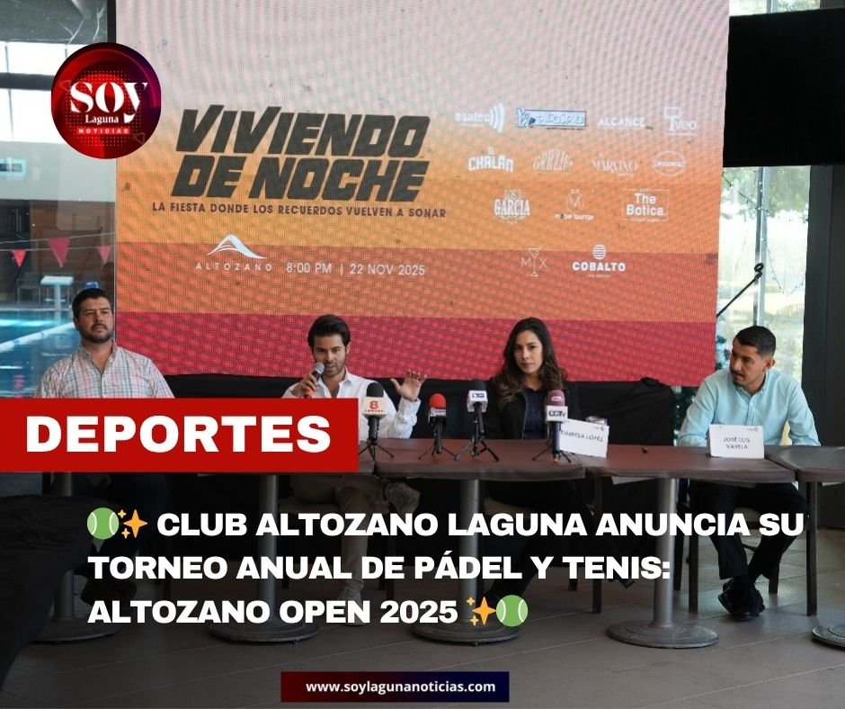 🎾✨ CLUB ALTOZANO LAGUNA ANUNCIA SU TORNEO ANUAL DE PÁDEL Y TENIS: ALTOZANO OPEN 2025 ✨🎾 Además, presenta la primera edición de la Fiesta Retro “Viviendo de Noche”, un evento pensado para revivir los mejores momentos, la música que marcó época y el ambiente que nunca pasa de moda.