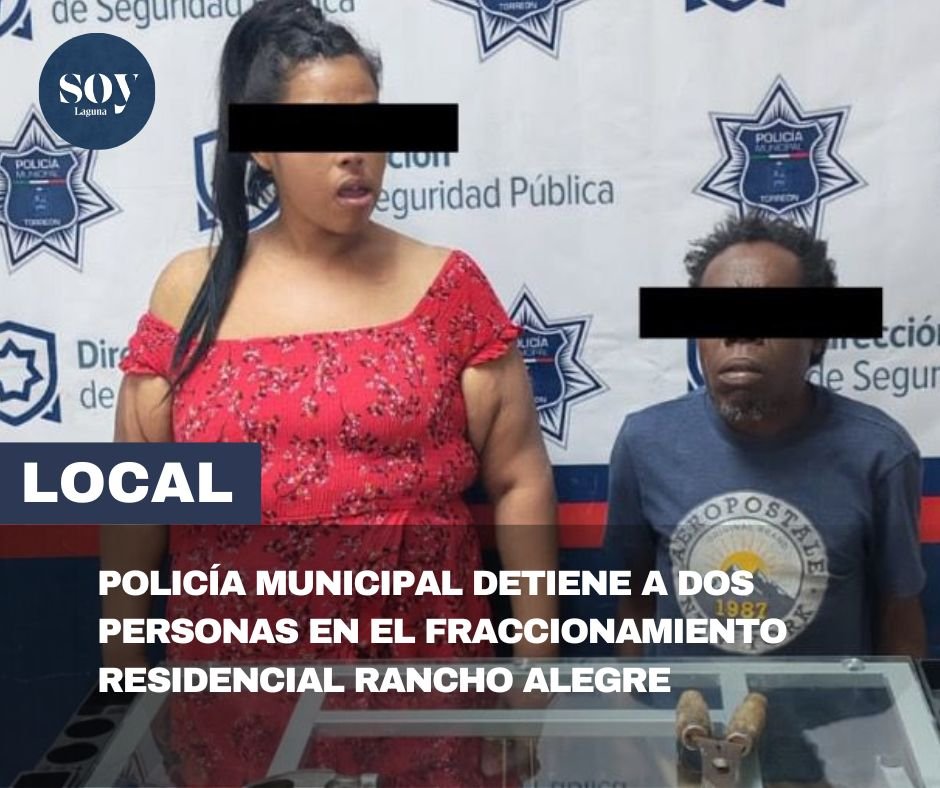 Torreón, Coahuila de Zaragoza; 9 de noviembre de 2025. — Elementos de la Dirección de Seguridad Pública Municipal detuvieron a un hombre y una mujer en el fraccionamiento Residencial Rancho Alegre, luego de ser señalados por amenazas y portación de armas blancas.