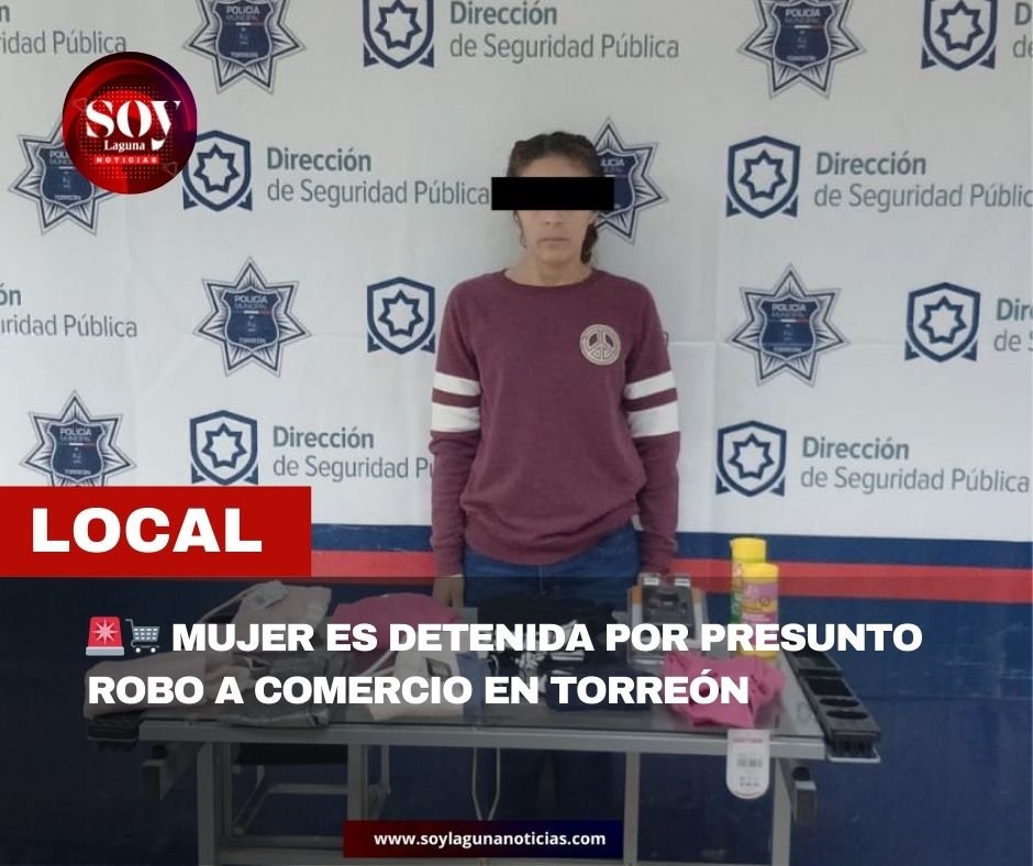 La Policía de Torreón informó sobre la detención de una mujer por su presunta participación en un robo a comercio en la colonia Abastos.