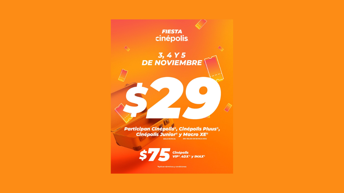 La cadena de cines mexicana anunció a través de sus redes sociales que esta oferta estará disponible los días 3, 4 y 5 de noviembre, aplicando en sus complejos Cinépolis, Cinépolis Pluus, Cinépolis Junior y Macro XE.