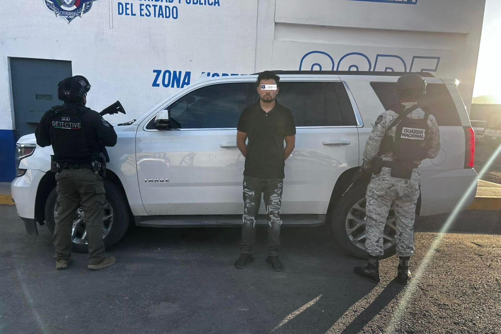 Ciudad Juárez, Chih. – Elementos de la Secretaría de Seguridad Pública del Estado (SSPE), en coordinación con la Guardia Nacional, detuvieron a un hombre identificado como Pedro Daniel L. N., de 21 años, luego de que intentara evadir la revisión vehicular en los puentes fronterizos e ingresara a territorio mexicano desde Estados Unidos.