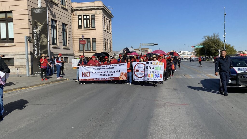 Cerca de 3 mil docentes del subsistema federal participaron en una marcha en la ciudad de Chihuahua para manifestarse en contra de la reforma a la Ley del Instituto de Seguridad y Servicios Sociales de los Trabajadores del Estado (ISSSTE). La movilización partió desde la glorieta de Pancho Villa y avanzó hasta el Palacio de Gobierno, donde se sumaron a la protesta del gremio estatal.