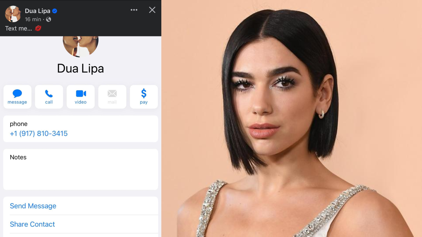 Dua Lipa Sorprende a sus Fans al Publicar su Número de Teléfono en Redes Sociales