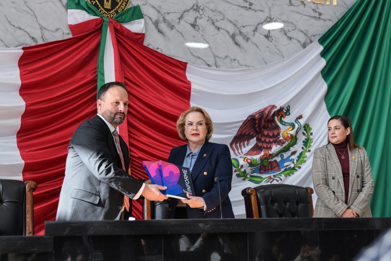 En una sesión solemne celebrada en el Congreso del Estado, el Secretario General de Gobierno, Santiago de la Peña, entregó el Segundo Informe de Resultados de la Administración estatal en representación de la gobernadora Maru Campos. La diputada presidenta del Legislativo, Adriana Terrazas Porras, fue la encargada de recibir el documento, marcando así el inicio del proceso de revisión y discusión de los logros obtenidos por el poder Ejecutivo durante el periodo de enero a diciembre de 2023.