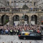 Escocia.- Este domingo miles de personas se reunieron a lo largo de la Royal Mile para rendir homenaje a la reina Isabel II, que llegó al Palacio de Holyroodhouse en Edimburgo, Escocia.