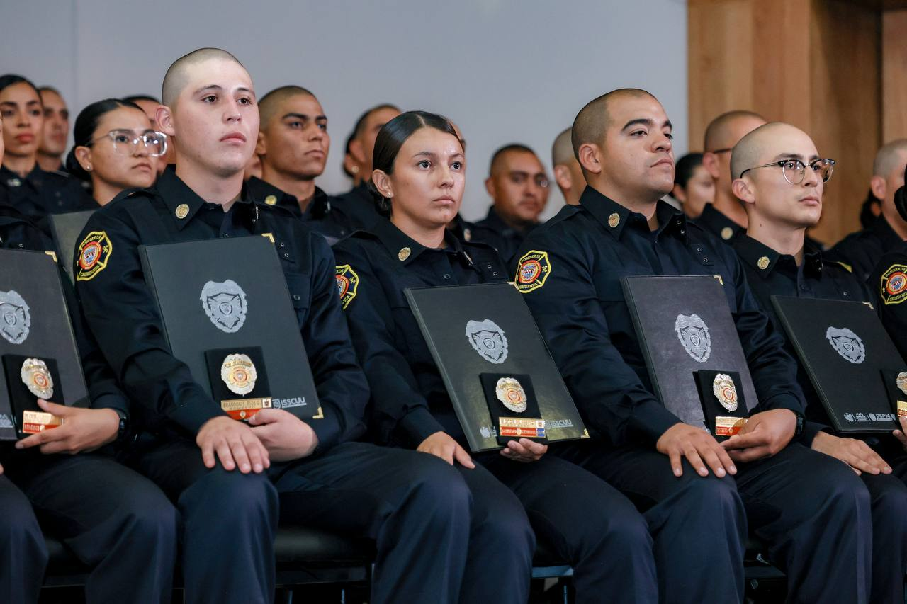 En una emotiva ceremonia celebrada en el Instituto Superior de Seguridad Chihuahua (ISSCUU), el alcalde Marco Bonilla encabezó la graduación de la segunda generación de Policías de Proximidad y Bomberos de esta administración. En total, 129 nuevos elementos —102 policías y 27 bomberos— se suman a las filas de la Dirección de Seguridad Pública Municipal (DSPM) con el firme compromiso de servir y proteger a la comunidad.