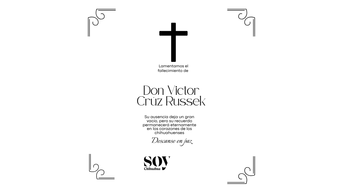 Chihuahua, Chih. – Grupo Alcance y Soy Chihuahua lamentan profundamente el fallecimiento de Don Víctor Cruz Russek, destacado empresario del ámbito automotriz y ganadero de Chihuahua, y esposo de la Gobernadora Maru Campos Galván, quien falleció este domingo tras una larga batalla contra el cáncer de pleura, dejando un profundo vacío en la comunidad empresarial del estado.
