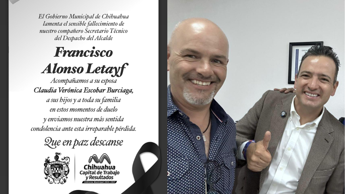 El Gobierno Municipal de Chihuahua informó con profundo pesar el fallecimiento de Francisco Alonso Letayf, quien se desempeñaba como secretario técnico de despacho de la Presidencia Municipal.