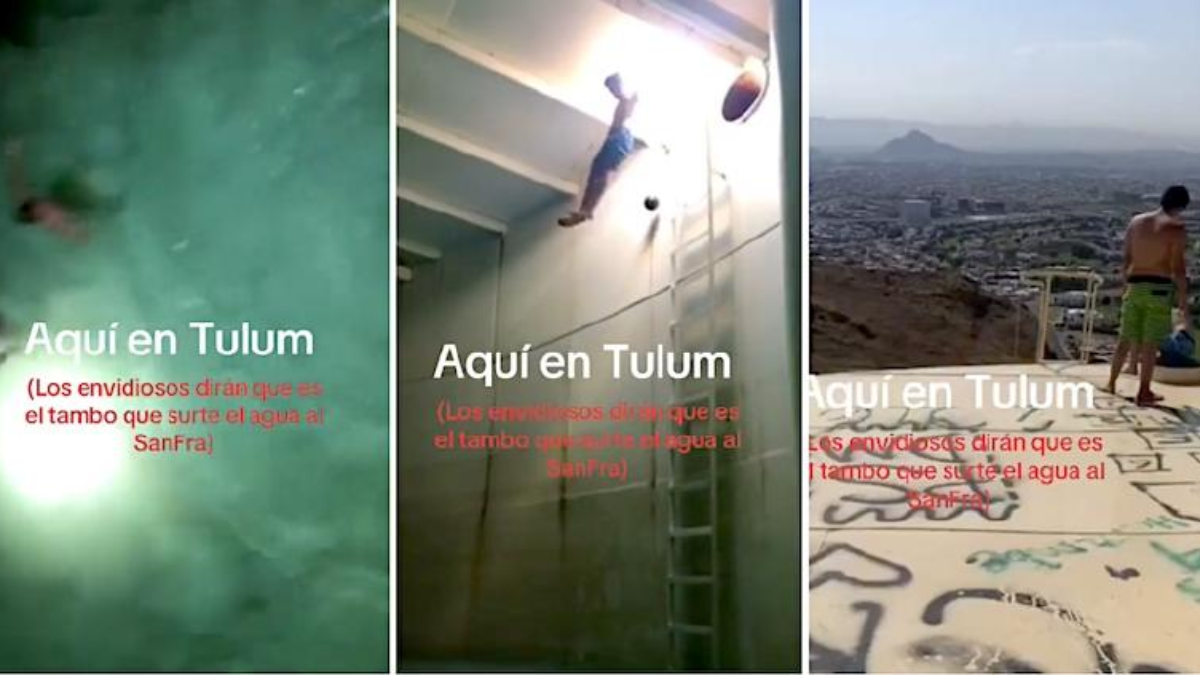 Un video que muestra a un grupo de jóvenes utilizando un megacontenedor de agua como alberca ha generado controversia en redes sociales a nivel internacional. La grabación, ampliamente difundida en plataformas como Facebook y TikTok, muestra a cinco personas lanzándose desde lo alto del tanque, acompañado por el mensaje en tono sarcástico: “Aquí en Tulum (los envidiosos dirán que es el tambo que surte de agua al San Fra)”.